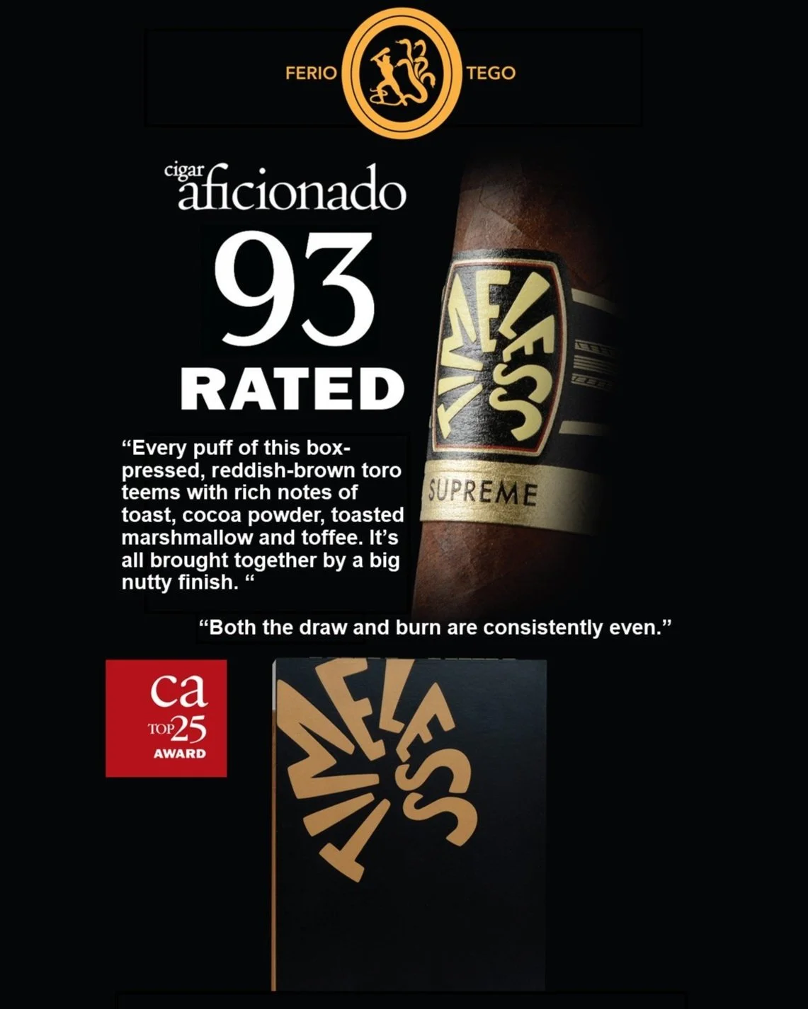 Ferio Tego is a premium cigar and accessories company launched in 2021 by Michael Herklots and Brendon Scott. In addition to their flagship Ferio Tego® brand, the company also owns the Timeless® Collection, Metropolitan® Selection, and Epoca® brands of premium cigars as well as the Ancora® accessories brand. Ferio Tego’s cigars are manufactured by hand in the Dominican Republic, Nicaragua, and Honduras.